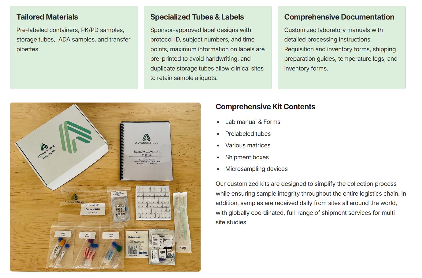 We offer customized sample collection kits, including vacutainers, aliquoting tubes and lab manuals.